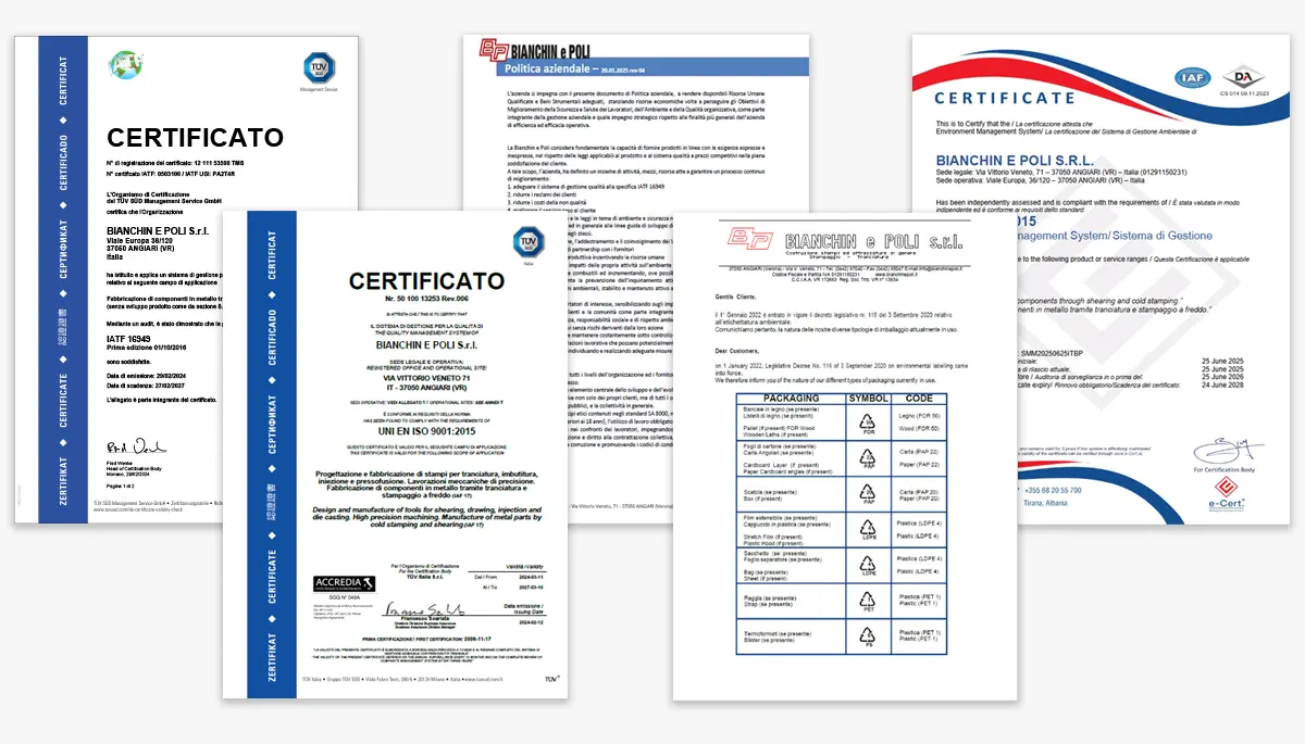 Nel 2017 abbiamo conseguito la certificazione ISO TS 16949:2009, successivamente sostituita con la IATF 16949:2016.